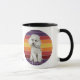Mug Adorable chien de caniche blanc Retro Sunset