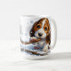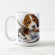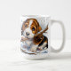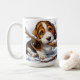 Basse basset hound pup profiter de la neige tomber tout en jouant avec un bâton dans la neige. Une scène d'hiver pleine de charme, avec des flocons de neige et une expression ludique qui capte joie et chaleur.