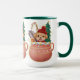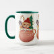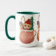 Un Noël, adorable chiot dans une tasse de joie avec des éléments de Noël sur une tasse de votre boisson préférée, de vacances.
