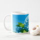 mug adorned with a pixel art blue hydrangeas