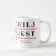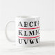 Alphabet mug for teachers with the alphabet and ending in "tell me what you think of me!"