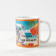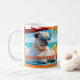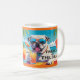 Tasse avec un collage de deux chiens buvant sur une plage ensoleillée en été. Un excellent cadeau pour un ami aimant les chiens.