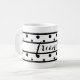 Jolie tasse avec les Amis écrits au centre en écriture noire. Formes géométriques avec pois noirs et rayures. Un look moderne et frais. Visitez mon magasin pour les accessoires correspondants. Oeuvres d'art originales © TamiraZDesigns.