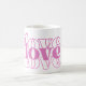 "Love" trois fois dans différentes nuances de rose. Le milieu "amour" est un moyen solide rose. Le haut "amour" est en lettres bulles en magenta et le bas "amour" est aussi en lettres bulles en rose rose.