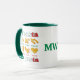 Fun Italie IT HASTA BE PASTA Monogram Mug, conçu avec divers types populaires de pâtes, à savoir fusilli, farfalle, rigatoni, conchiglie, penne et ravioli. Le texte est créé dans les couleurs du drapeau italien - vert, blanc et rouge - et lit IT HASTA BE PASTA. Une tasse à café aux pâtes amusantes et légères pour dire à tout le monde combien vous aimez les pâtes et merveilleux à boire lors de la confection de vos recettes de pâtes al dente préférées. Cette tasse de pâtes ferait aussi un grand cadeau à vos amis amateurs de pâtes pour célébrer la Journée mondiale des pâtes en octobre.