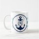 Rayures et ancre nautiques bleu-clair de bleu marine avec le monogramme.