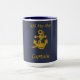 Mug de membre d'équipage. Illustration centrale de l'Ancre et de la corde en couleur dorée. Personnalisez la légende en haut avec le nom du navire et en bas avec le grade/titre de l'équipage.