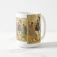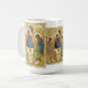 peinture chrétienne médiévale par le rublev d'andre de son interprétation de la trinité avec trois anges avec les ailes d'or, le halo, le vert, le rouge, et les manteaux d'or, séance ensemble autour d'une table. beaux-arts illustratifs dans les or et des verts, dans une peinture religieuse sensible et de raffinage.