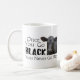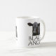Un côté comporte une photo d'une jeune vache noire à Angus, avec la race. L'autre montre la même photo mais de pair avec une torsion drôle sur une énonciation populaire "une fois que vous allez noir, vous n'allez de retour jamais !"