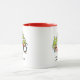 Une jolie tasse design de Noël colorée avec un ours polaire, un manchot et une souris, tous avec des écharpes et des patins à glace avec des arbres enneigés et un texte qui dit C'est Noël !