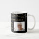 Célébrez un 80e anniversaire pour lui ou elle avec cette tasse de photo souvenir en noir et or avec un design de typographie de script de calligraphie rétro indiquant 80 ANS DANS LA FABRICATION qui incorpore leur année de naissance dans la conception, personnalisée avec votre titre ou message personnalisé et 2 images accentuées de lumières à cordes. ASSISTANCE : Pour obtenir de l'aide sur la modification de la conception, la personnalisation, le changement de couleur, le transfert de la conception à un autre produit ou si vous souhaitez coordonner des éléments, contactez le concepteur AVANT DE COMMANDER via Zazzle Conversation ou makeitaboutyoustore@gmail.com.