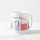 Trois charmants sacs à main en mauve, rose et noir avec des accents mignons. Un dicton amusant.