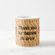 Express votre appréciation à votre professeur avec cette tasse de remerciement avec un panier brun arrière - plan motif et des pommes rouge vif. L'arrière - plan abstrait donne une couleur neutre pour les pommes rouge vif des deux côtés de cette tasse de thé ou de café du matin. "Merci pour nous aider à grandir" est affiché dans le centre et peut être facilement customisé pour répondre à vos besoins.
