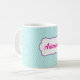 Beautiful aqua blue and lavender purple custom name coffee mug. Makes perfect gift for anyone special, including you! Pink lettering. Customizable.