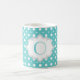 Aqua moderne, pois blanc motif monogramme sur mesure. Il y a un cadre avec votre monogramme en bleu turquoise au centre. Ajoutez votre texte, votre nom ou vos initiales. Un design mignon et girly utilisant les points classiques avec un look contemporain mais rétro. Vous pouvez le customiser et modifier la couleur arrière - plan et la couleur du texte en choisissant parmi plus de 200 couleurs à partir du tableau de couleurs Zazzle. Design élégant, classe et élégant avec la police parisienne.