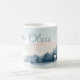Café Mug | Ajoutez votre nom Scène boisée d'aquarelle blanche avec des verdures enneigées et des cerfs blancs magiques - Paix sur Terre en calligraphie sur le devant - nom date et un bel aérosol fleuri d'hiver sur le dos. Il fait partie de la collection de cerfs de bois aquarelle de WhimsicalArtwork™