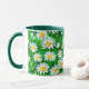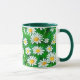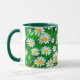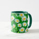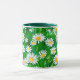 Tasse à café dans une aquarelle motif de marguerites blanches aux centres jaunes dorés, sur un arrière - plan vert pâle