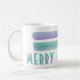 Aquarelle Bleu Joyeux Noël Typographie Café Fête Mug. Typographie tendance et deux traits d'aquarelle bleu et violet.