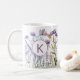 Sirotez avec style avec notre Mug de café Meadow Fleur sauvage purple Aquarelle Monogrammé. Customisez avec votre initiale en police minimaliste moderne, parfait pour les amateurs de fleurs fleurs sauvages et violettes qui apprécient une touche de chic boho.