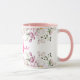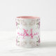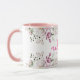 Une belle illustration de disposition florale peinte à la main rose sur une tasse avec votre propre monogramme et nom personnalisé. Grand cadeau romantique personnalisé pour les filles qui aiment les fleurs rose printemps et été, roses, pivoines.