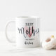 Surprenez votre mère avec une tasse personnalisée pour la fête des mères ou son anniversaire. Cette tasse présente un coeur aquarelle avec les mots meilleure mère au monde et vous pouvez facilement le customiser avec le nom de votre mère.