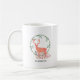 Une tasse à café avec une aquarelle numérique. Une silhouette de renne orange pastel à l'intérieur d'une couronne de feuilles d'herbes. Champignons et fougères forestières à ses pieds. Personnalisez avec un nom.