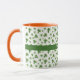 Tasse à café avec un motif de shamrocks d'aquarelle avec une bande verte au milieu pour ajouter votre prénom ou votre nom. Montré dans poignée et jante orange 11oz. Des tailles et des couleurs de jante et de poignée supplémentaires sont disponibles. Parfait pour la Saint Patrick ou n'importe quel jour où vous voulez montrer votre fierté irlandaise.