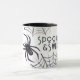 Mug Éffrayante d'Halloween avec des toiles d'araignée noires délicates. Customisez ou personnalisez en modifiant le texte. Consultez la section sur la coordination des gâteries personnalisables ainsi que des cartes de voeux dans notre magasin.