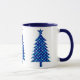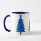 Mug dans une silhouette classique d'un sapin de Noël en bleu saphir foncé, modelé avec des étoiles satinées texturées en aqua et bleu glace