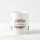 Cette tasse festive a un arrière - plan blanc avec toutes les garnitures de vacances. Au centre, de la tasse il y a des cadeaux enveloppés rouge et vert, avec des sprigs de saint et à feuillage persistant. L'avant et l'arrière de la tasse ont un arbre de Noël, avec des lumières, des ornements et des cadeaux. Tout le texte, sur cette tasse peut être remplacé par un nom, une occasion spéciale ou même une date.