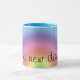 Rainbow est allongé à travers la tasse avec le texte "C'est un nouveau jour ..." écrit en script en bas. J'ai bien pensé à commencer la journée sur la bonne note.