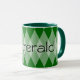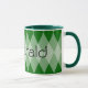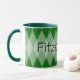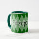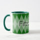 Argyle pattern in greens. Background colour of dark green is toned down 10 and 20 percent to create a repeated diamond pattern in three shades. Name appears in black fonts at centre. (Customize/Edit background colour to change).