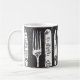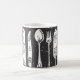 Design élégant et unique noir et blanc de couverts rétro illustrés sur des tasses à café à deux tons.
