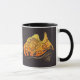 Cette belle tasse à café présente la carte / forme de l'Australie, décorée avec l'art aborigène. Il y a une personne australienne autochtone jouant le didgeridoo, kangaroos, un arbre à herbe et le tableau emblématique point.