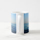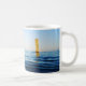 Mug avec un elfe de laine de cacre marin dans le bateau sur la mer avec son chien