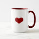 Une tasse à deux tons avec un coeur rouge d'un côté et un "coeur" de l'autre.