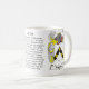 Crête de famille d'Ayers comprenant l'origine et la signification du nom d'Ayers sur une tasse en céramique. Nous avons 1000's des crêtes (manteau des bras). Si nous n'avons pas votre manteau de bras sur notre site de Zazzle nous faisons savoir et nous serons heureux de l'ajouter. Pour information envoyez-nous chez heraldry505@hotmail.com ces crêtes et l'information peut être employée sur tous les tasses et steins de Zazzle.