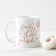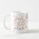 Célébrez la saison des fêtes magiques et festives avec nos tasses de fêtes. Notre design moderne de vacances comprend "Baby It's Gold Outside" dans un design typographique à la mode en écriture girly. Le message typographique du script est coloré en papier rose rose faux. Les flocons de neige modernes sont éparpillés un peu partout.