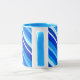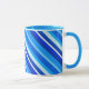 Mug en Couche, look 3-d, bandes diagonales dans plusieurs nuances de bleu et turquoise, du bleu ciel pâle au cobalt profond, accentué de blanc
