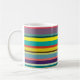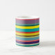 Cette tasse a un design de bandes horizontales dans les tons bleu, vert, marron, violet, rouge, jaune, orange et rose.