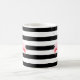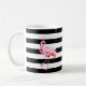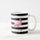 Bandes blanches et noires flamingo rose nom personnalisé tasse à café.
