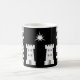 "Sable, deux tours et en chef un mullet de trois points de plus et six points de moins."