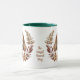 Une jolie couronne d'automne dans les tons brun cannelle, bronzé et crème entoure l'image aquarelle d'un chien âpre Basset Hound. L'image est imprimée deux fois sur la tasse, avec votre texte personnalisé entre eux.