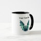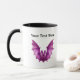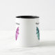 Cette tasse de café ou de thé a deux chauves-souris éffrayantes en vol avec des ailes ouvertes. L'une est rose vif, l'autre est vert vif. Customisez votre texte avec le modèle.