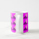 Cette tasse a une conception Bauhaus de triangles superposés en violet, magenta et rose.