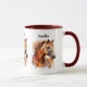 Une tasse avec une belle illustration. Tête de cheval couleur châtaignier et haut du corps. Avec des patchs d'aquarelle derrière.