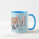 Ours en peluche mignon aux yeux en forme de coeur avec une pépinière initiale en alpha dans une belle couleur bleu clair, tenant une fleur et un oiseau mignon dans sa main. Personnalisé Mug ferait un grand cadeau, cadeau de Baby shower, nouveau cadeau d'arrivée. Contactez-moi si vous aimez une autre couleur de ce coussin.
