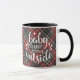Un chic tasse de saison de vacances avec un élégant script bébé il fait froid citations à l'extérieur sur un arrière - plan tartan.