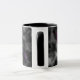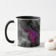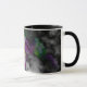 C'est une belle conception noire, verte, et pourpre colorée qui semble grande sur cette tasse.