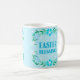 Un design floral délicat entoure le message "BÉNÉFICES DE PÂQUES" sur cette belle tasse. Offrez-vous ou offrez-vous cette tasse robuste en cadeau de Pâques. Des bonbons ou un petit plante peuvent être ajoutés pour faire une surprise de Pâques supplémentaire !